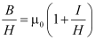 Magnetic induction B is the sum of the magnetic field B0 and the magnetic field μ0I produced due to the magnetisation of the substance. Thus,